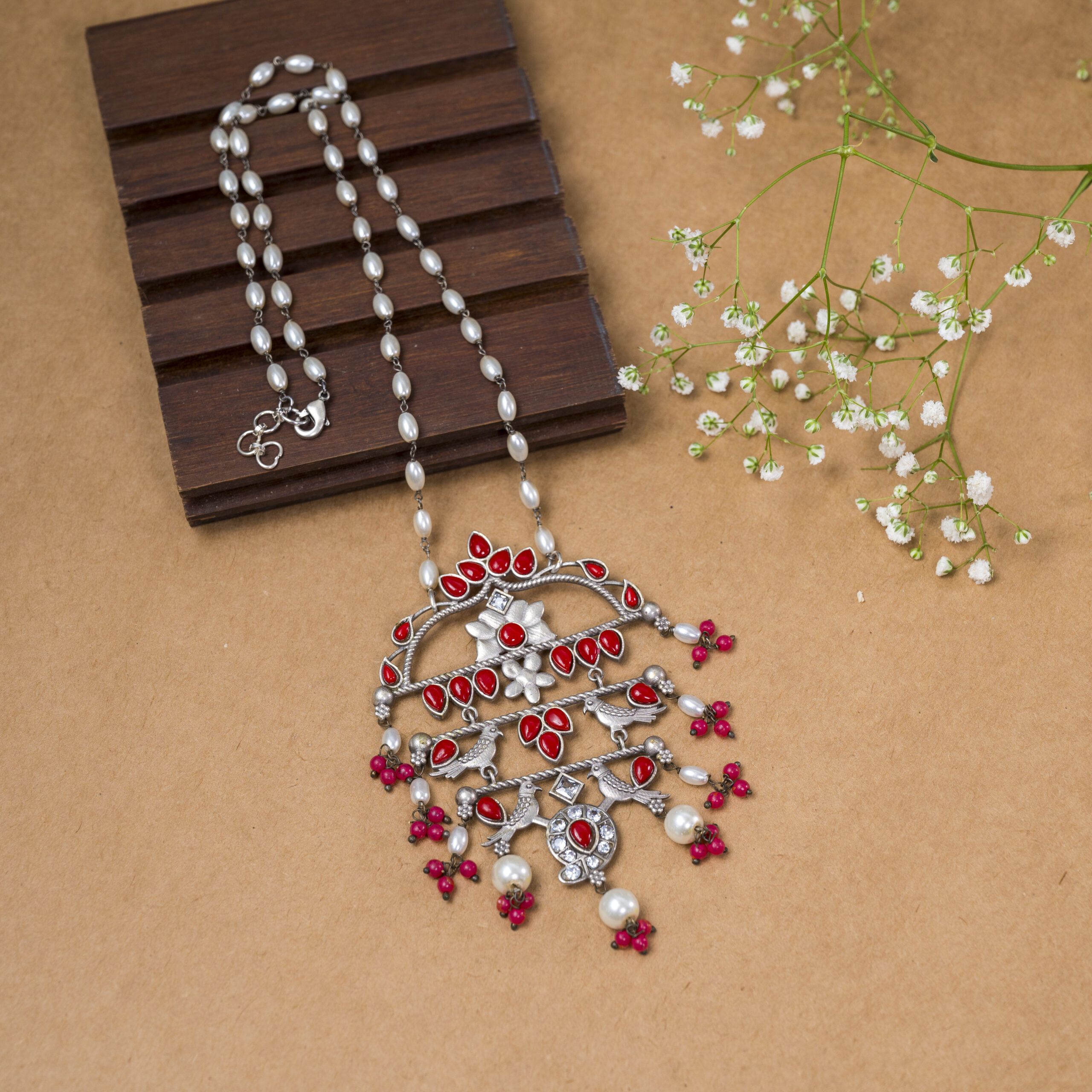 Birdie Neckpiece -Red