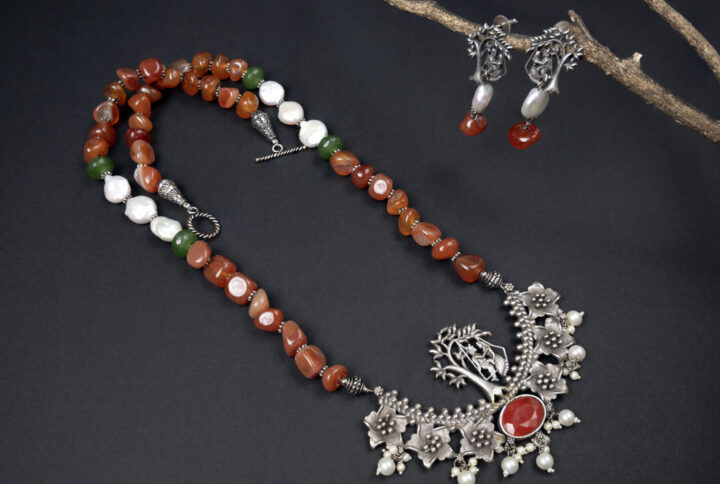 Handcrafted Neckpiece With Vibrant Orange Semi-Precious Beads, Featuring A Sacred Ganesh Pendant .