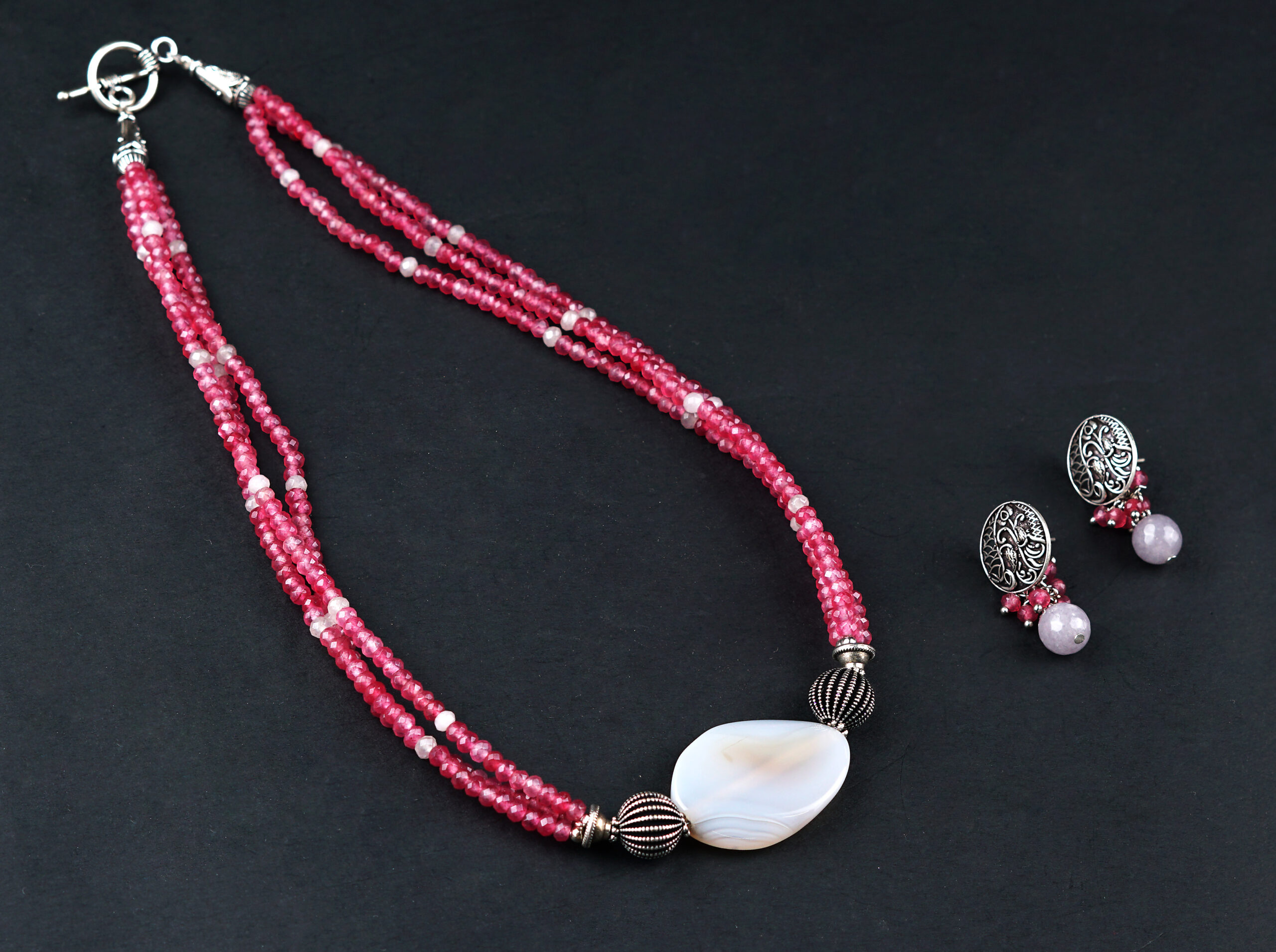 Agates with brass beads