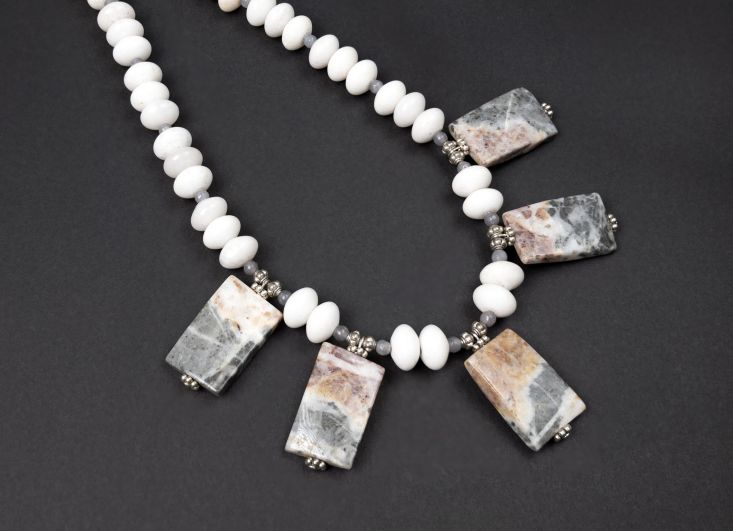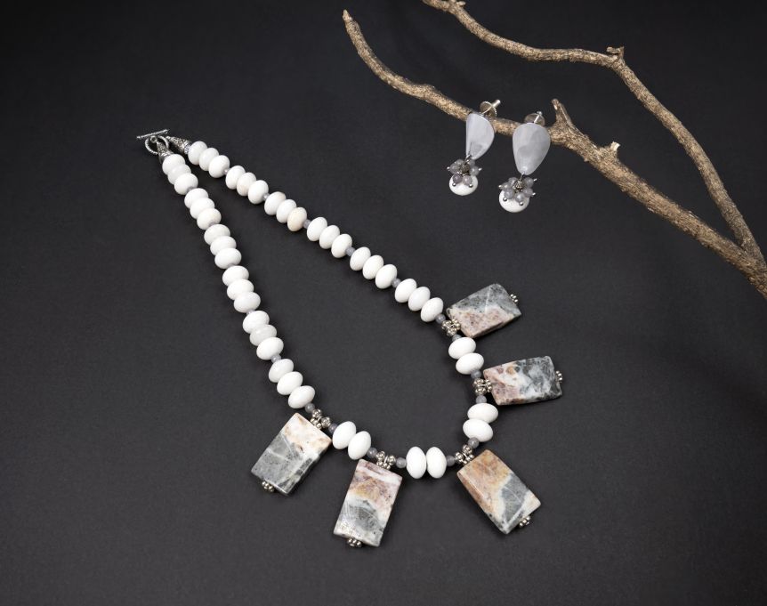 Elegant Fusion Of White Semi-Precious Beads And Ocean Jasper – Timeless Beauty Inspired By Nature